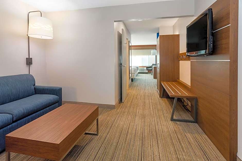 A separate seating area with a flat-screen satellite TV and a sofa bed is featured in this suite. A microwave and small fridge are also included.